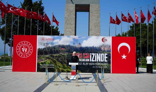 57. Alay Vefa Yürüyüşü'nün kapanış konuşmasını gerçekleştiren Gençlik ve Spor Bakan Yardımcısı Av. Doç. Dr. Safa Koçoğlu, "Az önce Conkbayırı'ndaydık. 57. Alay Vefa Yürüyüşümüzü tamamladık. Türkiye'nin ve dünyanın dört bir yanından bu Vefa Yürüyüşü'ne katılmak için koşup gelen tüm gençlerimize gönülden teşekkür ediyorum. Gençlik ve Spor Bakanımız Dr. Osman Aşkın Bak'ın selamlarını getirdim sizlere, kendisi burada olamasa da gönlü burada, sizlerle. Sizler bugün burada, Çanakkale'de attığınız her adımda; yalnızca geçmişin izlerini değil, yarınlara ışık tutan bir yürüyüşün izzetini de taşıyorsunuz. Tıpkı bayrağımızı dünyanın dört bir yanında bilgiyle, emekle, başarıyla dalgalandıran nice gencimiz gibi; sizler de bu milletin onurunu, inancını ve umudunu yüreklerinizde taşıyarak yürüyorsunuz. Bir asır geçse de, destan yazanların izinden yola çıkma iradeniz ve o ruhu hissetme arzunuz her şeyden kıymetli. Şimdi Şehitler Abidesi'nin manevi huzurundayız. Çanakkale; kahramanlığın, fedakârlığın ve imanın tarih kitaplarına sığmadığı bir destandır. Bu topraklar metrekareye 6 bin merminin düştüğü, on beşlilerin fedakarlıklarının tarihe mühür vurduğu topraklardır. Her birinin ruhu için fatihalarımızı, dualarımızı okuyoruz. Rabbimiz makamlarını ali eylesin. Ruhları şad olsun. Çanakkale ruhu, milletimizin kalbine kazınmış, asırlar geçse bile sönmeyen bir ateştir. O ateş ki, bizi millet yapan ortak ruhun, ortak duygunun, ortak idealin kaynağıdır. Bu topraklar için şehadete koşanlar; istiklal ve istikbal için canlarını hiç düşünmeden feda etmiş kahramanlardır. Ve onlar 'Asla geri dönmeyi düşünmediler.' gelecek nesiller için, bizim için, bugün burada bulunan sizler için, yarınlarımızı kurtarmak adına büyük bedeller ödemişlerdir. Bu topraklarda yazılan destan, sadece kendi tarihimizin değil, dünya tarihinin de akışını değiştirmiş, emperyalist güçlere 'dur' demiştir. Çanakkale, sadece bir savaş değildir. Çanakkale; bir duruşun, bir direnişin, dünyaya verilmiş eşsiz bir insanlık dersinin adıdır. Bu topraklarda can veren şehitlerimiz, bizlere ağır ama bir o kadar onurlu bir emanet bırakmıştır. Bu emanet, ayaklarımızı sağlam bastığımız bu vatandır. Bu emanet, bugün her birinizin elinde dalgalanan rengini şehitlerimizin asil kanından alan ay yıldızlı bayrağımızdır. Bugün, Türkiye'mizde 86 milyon huzur içinde yaşıyorsak, bunu Çanakkale'de toprağa düşmüş o genç, cesur, yiğit şehitlerimize borçluyuz" dedi.