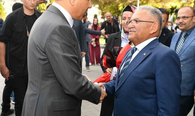 Bir dizi programa katılmak üzere Kayseri'ye gelen İçişleri Bakanı Ali Yerlikaya, Kayseri Valisi" Gökmen Çiçek'i ziyaretinin ardından Büyükşehir Belediye Başkanı Dr. Memduh Büyükkılıç'a nezaket ziyaretinde bulundu. Büyükşehir Belediye Başkanı Dr. Memduh Büyükkılıç, İçişleri Bakanı Yerlikaya'yı, Büyükşehir Belediyesi önünde çiçeklerle karşıladı. Karşılamanın ardından ikili ve beraberlerindeki heyetler başkanlık makamına geçti.