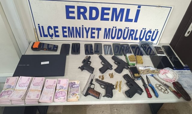 Alınan bilgiye göre, İçişleri Bakanı Ali Yerlikaya'nın bugün açıkladığı 'Kaplanlar' çetesinin Mersin'in Erdemli ilçesinde bir süredir bazı iş yerlerini kurşunlayan, haraç isteyip tehdit eden, zorla senet imzalatıp yağma gibi olaylara karıştığı bu yüzden de detaylı takip çalışması yapıldığı öğrenildi. Cumhuriyet Başsavcılığı koordinesinde Erdemli İlçe Emniyet Müdürlüğü ekiplerinin, 4 ay süren çalışmada şüpheliler belirlendi. Belirlenen şahısların yakalanması için önceki hafta Özel Harekat Timlerinin de desteğiyle ilçe genelinde 33 adrese eş zamanlı operasyon yapıldı. Operasyonda 22 şüpheli yakalanırken, yapılan aramalarda 300 bin TL, 6 tabanca, 6136 sayılı Kanun'a giren muşta ve bıçaklar, bir miktar uyuşturucu madde, pos cihazı, silahlara ait mermiler ile birlikte çeşitli suç unsurları ele geçirildi. 'Silahlı tehdit, iş yeri kurşunlama, şantaj, silah zoruyla senet imzalatma, birden fazla kişiyle nitelikli yağma ve kişiyi hürriyetinden yoksun kılma' gibi birçok suçtan adliyeye sevk edilen şüphelilerden 15'i tutuklanırken, 7'si adli kontrol şartıyla serbest kaldı.