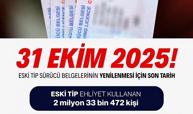 İçişleri Bakanı Ali Yerlikaya, eski tip sürücü belgelerindeki yenileme tarihinin 31 Ekim 2025 olduğunu hatırlatarak, mevcut sürenin uzatılmayacağını bildirdi.