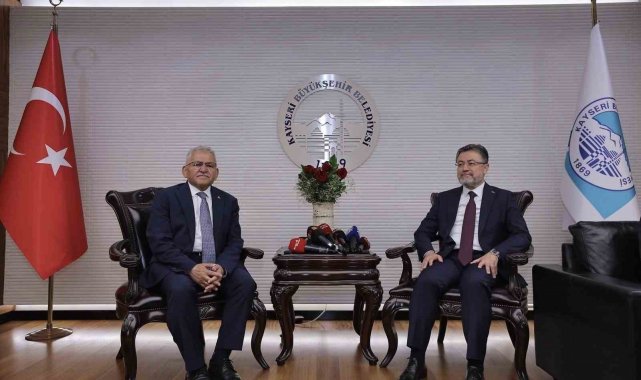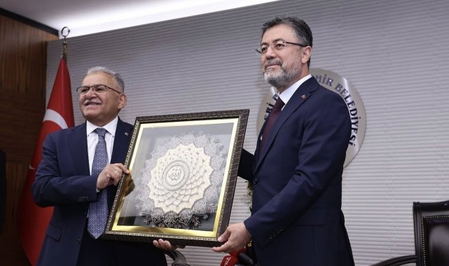 Tarım ve Orman Bakanı İbrahim Yumaklı, Kayseri Büyükşehir Belediye Başkanı Dr. Memduh Büyükkılıç'ı makamında ziyaret etti. Başkan Büyükkılıç, tarım ve hayvancılık alanında 1 milyar TL'ye yakın destekleri olduğunu belirtirken, Bakan Yumaklı ise istişare ve uyum kültürü ile bu alanda yapılan hizmetlerden dolayı Büyükkılıç'a teşekkür etti.