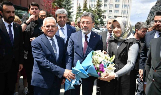 Başkan Büyükkılıç, bir dizi programlar kapsamında Kayseri'ye gelen Tarım ve Orman Bakanı İbrahim Yumaklı'yı başkanlık girişinde çiçekle karşıladı.