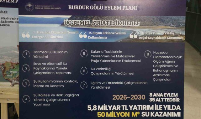 Türkiye'deki birçok gölün kurumaya yüz tuttuğunu ve kuraklığın önümüzdeki yıllarda daha da belirginleşeceğinin altını çizen Bakan Yumaklı, "İklim değişikliğinin ülkemiz açısından en görünümlü taraflarından birisi de göllerin kurumasıydı. Özellikle göllerimizin büyük bölümünde buharlaşmanın etkisiyle su kaybı mevcut. Eğirdir Gölündeki buharlaşma kaybı yüzde 79, Burdur Gölündeki buharlaşma kaybı yüzde 78'dir. Bu çerçevede göllerimiz için hazırlamış olduğumuz eylem planlarının hızlıca hayata geçirilmesini arz ediyoruz. Sırada diğer göllerimiz var. Bu çerçevede her bir gölün ekolojik özellikleri, kullanım amaçları ve gelinen listeler doğrultusunda tehdit ediliyor" ifadelerine yer verdi.