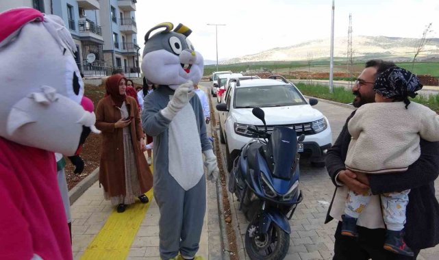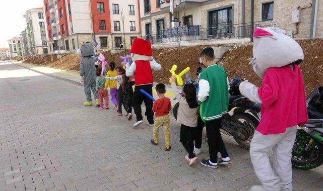 Bayram ziyaretlerinin yanı sıra depremzede çocuklar için de binaların bahçelerinde maskotlar tarafından gösteriler yapılarak çeşitli oyunlar oynandı. Çocuklara ise bir birinden farklı ve güzel hediyeler dağıtıldı. Kendilerine yapılan ziyaretten dolayı oldukça mutlu olduklarını dile getiren depremzede vatandaşlardan Turgut Doğan, "Depremde çok zorlu süreçler geçirdik. Kayıplarımız var, Allah hepsine rahmet eylesin, kalanlara da sabırlar ihsan eylesin. Şuanda da çok şükür devletimizin bizlere sunmuş olduğu hizmetlerden dolayı bizler artık rahat etmekteyiz. Şimdi bayramları birazcık daha eski bayramlar tadında yaşamaya başladık" dedi.