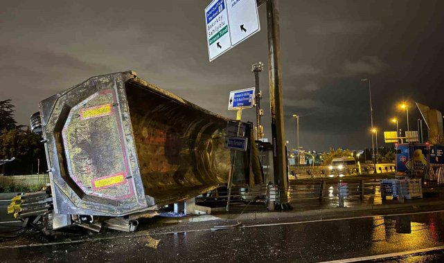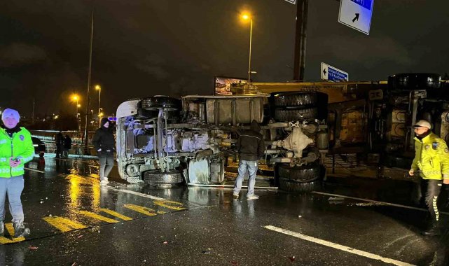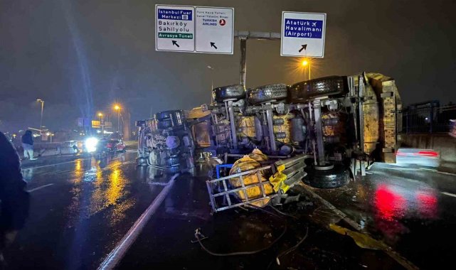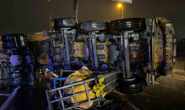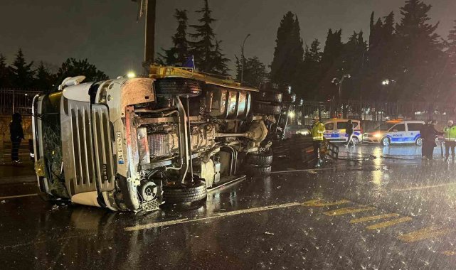 Bakırköy'de hafriyat kamyonu bariyere çarparak devrildi: 2 yaralı