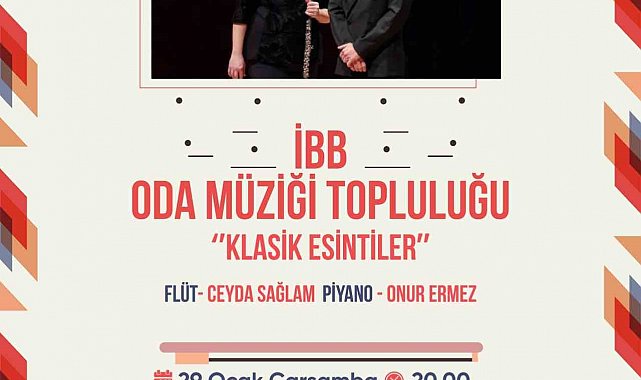 Bakırköy Belediyesi'nin vatandaşları İBB Kent Orkestraları ile bir araya getirdiği "Bakırköy'de İş Çıkışı Konserleri" devam ediyor. İBB Oda Müziği Topluluğu'nun 29 Ocak Çarşamba günü Tarık Akan Kültür Merkezi'nde gerçekleştireceği "Klasik Esintiler" konseri ile vatandaşlar günün stresinden arınacak.