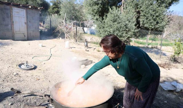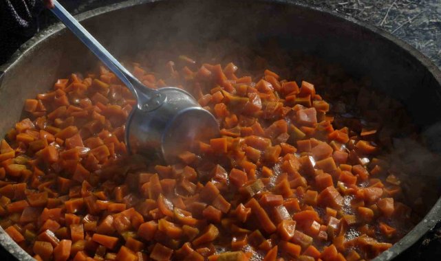 Kabak tatlısı yapan Ayşe Ayhan, "Lezzeti vazgeçilmez olsa da mesaisi zor bir tatlı. Biz yaklaşık 30 kilo kabağı bir gün önce imece usulü kestik dilimledik. Bir gün sönmüş kireçte beklettik. Kireçte bekletmemizin nedeni çıtır kıvama ulaşması. Saatlerce odun ateşinde kaynıyor. Kış boyu yemeklerde, çayın yanında bölgemizde sık kullanılan bir lezzet" diye konuştu.