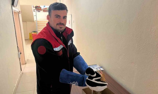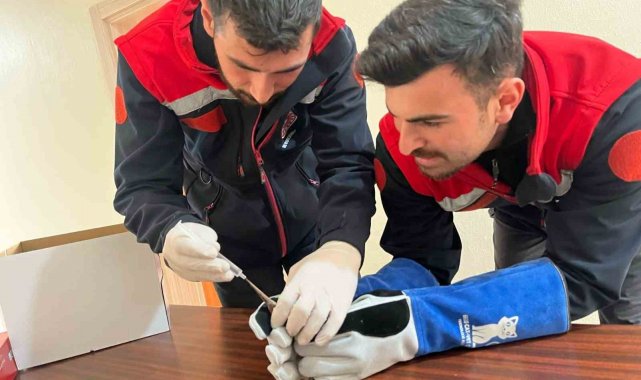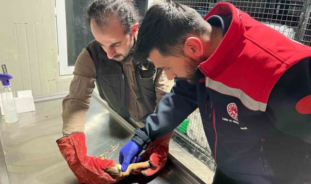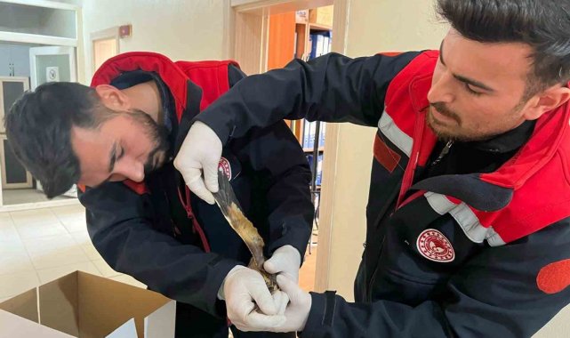 Erzurum'un Karayazı ilçesinde yaralı ve bitkin halde bulunan balaban kuşu tedavisinin yapılması için yetkililere teslim edildi.