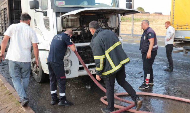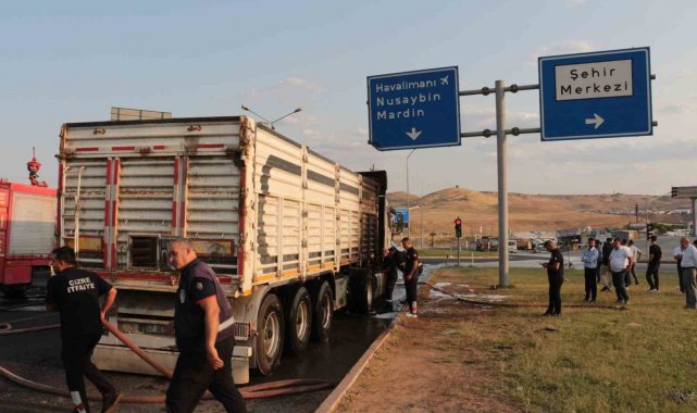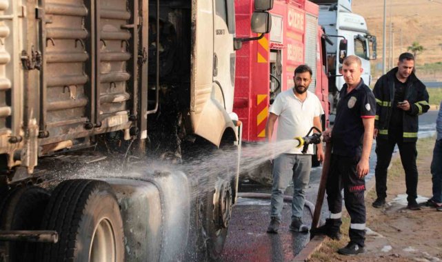 Şırnak'ın Cizre ilçesinde seyir halindeki tırın balatalarında oluşan ısınma, yangına neden oldu.