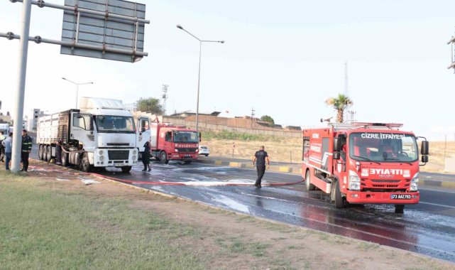 Cizre-Silopi Çevre yolunda İzettin Tekin yönetimindeki 47 PV 095 plakalı tırın balata kısmında oluşan ısınmadan dolayı alevler yükselmeye başladı. Sürücü, tırdan yükselen alevleri fark edip aracı yol kenarına çekerek 112 Acil Çağrı Merkezine ihbarda bulundu. İhbar üzerine olay yerine itfaiye, polis ve sağlık ekibi sevk edildi. Yangın, itfaiye erleri tarafından kontrol altına alınarak söndürüldü.