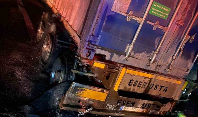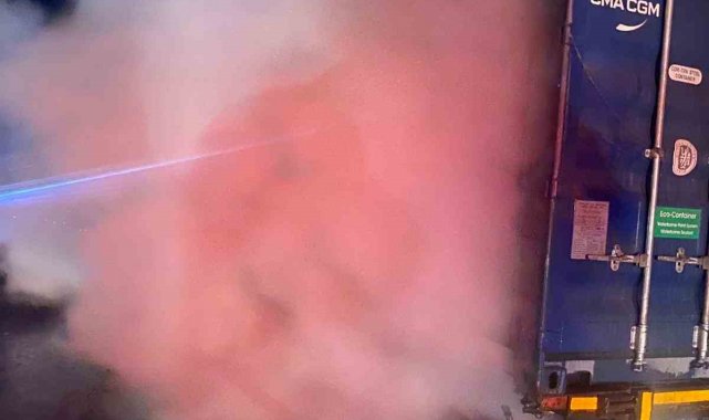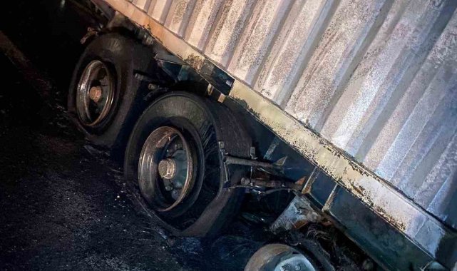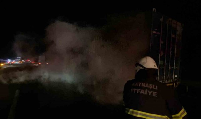 Balatalarından tutuşan tırdaki yangın kısa sürede söndürüldü