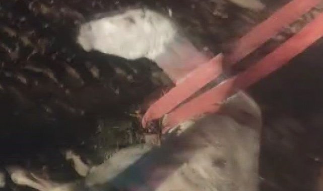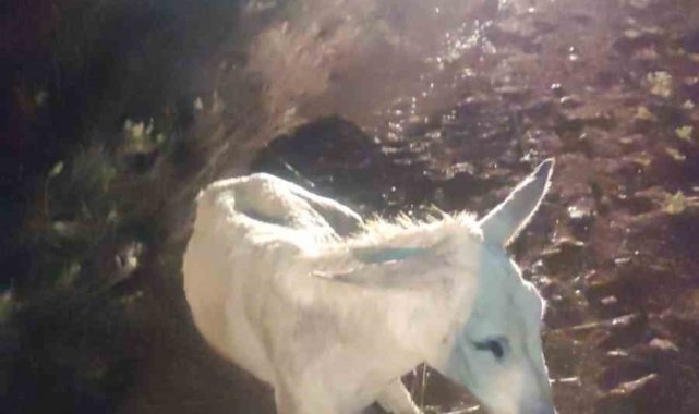 Hatay'da dere yatağında balçığa saplanan eşek, vinç yardımıyla kurtarılarak sahibine teslim edildi.