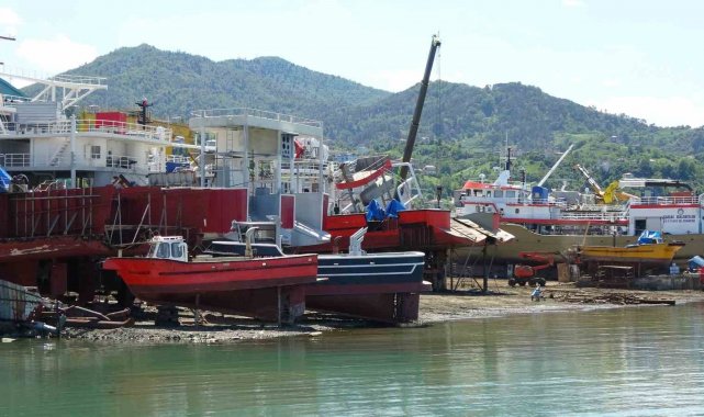Denizlerde av yasağının 15 Nisan'da başlamasının ardından çok sayıda balıkçı teknesi Trabzon'un Sürmene ilçesi Yeniay mahallesindeki Çamburnu Tersanesi'nde bakım ve onarımdan geçiyor.