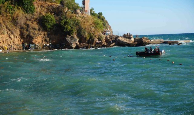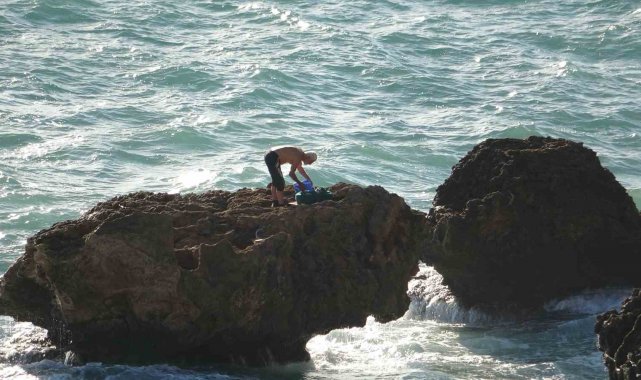 Antalya'da kayalık alanda balık tutarken aniden yükselen dalgalar nedeniyle mahsur kalan adam, rüzgarın hafiflemesinin ardından denize atlayıp yüzerek deniz polisi eşliğinde kıyıya ulaştı.