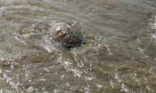 Balıkçı ağlarına takılan deniz kaplumbağası tekrar denize bırakıldı
