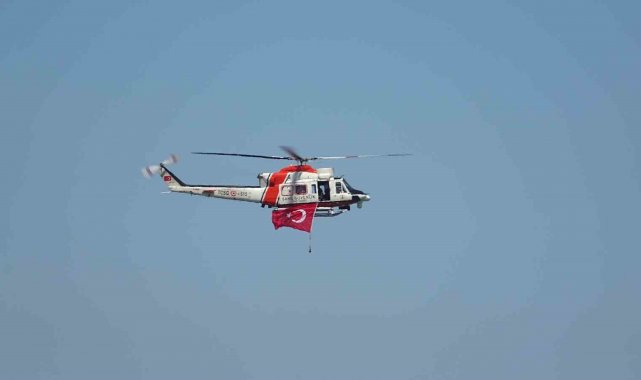 Tören geçişine Sahil Güvenlik Komutanlığı'na ait bir helikopter de havadan destek verirken, açıkta demirli bulunan TCG Anadolu Gemisi ile balıkçı tekneleri aynı karede ilgi çekici görüntüler oluşturdu.