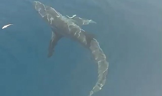 Tekneleri ile Saros Körfezi sahiline kıyısı bulunan Erikli köyü sahili açıklarına açılan balıkçılar, suyun yüzeyinde yaklaşık 2,5 metre uzunluğundaki köpekbalığını görünce şaşırdı. Balıkçılardan biri cep telefonu ile bu anları kaydederken, köpekbalığı bir süre sonra gözden kayboldu.