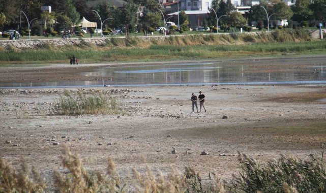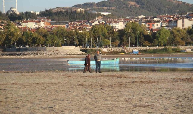 Türkiye'nin en önemli tatlı su balığı üretim merkezlerinden balıkçıların ağ attığı, avlandığı gölün kuruyan kesimlerinin kara parçasına dönüştüğü yerlerde şimdilerde insanlar gezinti yapıyor, yürüyüş gerçekleştiriyor.