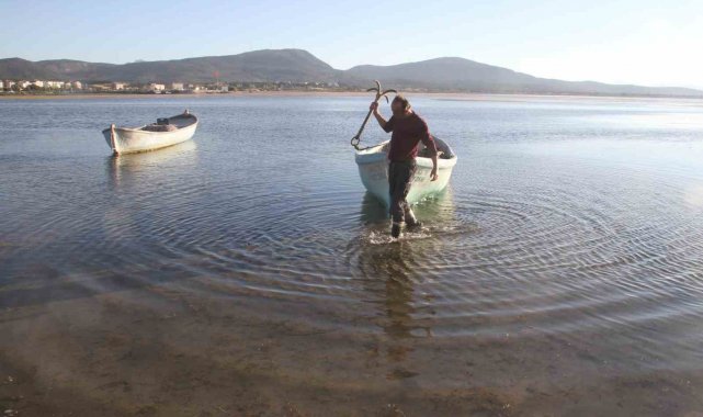Balıkçıların ağ attığı kuruyan göldeki toprak parçalarında şimdi yürüyüş yapılıyor