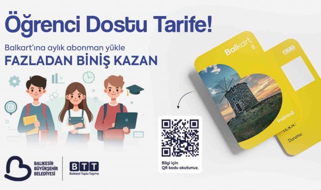 Balıkesir Büyükşehir Belediyesi iştiraki BTT AŞ, Aylık Abonman Akıllı BALKART Uygulamasıyla öğrencilere daha uygun fiyatla daha çok biniş yapabilme imkânı sağlıyor. Öğrenciler, 3 tip olarak hazırlanan tarifelerden istediğini alarak 30 gün boyunca kullanabiliyor.