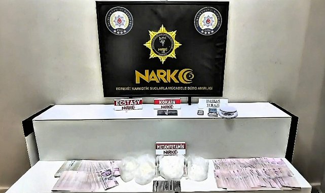Balıkesir Narkotik Suçlarla Mücadele Şube Müdürlüğü görevlilerince son bir haftalık süreç içerisinde Edremit ve Bandırma ilçelerinde gerçekleştirilen 2 ayrı operasyonda; 6 kilo 752 gram skunk esrar, 1 kilo 146 gram metamfetamin, 1 adet ecstasy, 0,58 gram kokain, 3 adet hassas terazi ve uyuşturucu madde satışından elde edildiği değerlendirilen 127 bin 950 TL ele geçirildi. Adli makamlara sevk edilen 3 şahıs çıktıkları mahkemede tutuklandı.