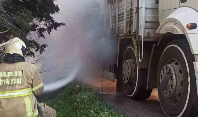Olay, Balıkesir'in İzmir- Bursa yönü çevre yolu üzerinde meydana geldi. İzmir istikametinden seyir halinde olan 35 AKA plakalı otomotiv plastik yedek parçası yüklü kamyonun balatalarında başlayan yangına yüke sirayet etmek üzereyken itfaiye müdahale etti. Ekiplerin gayretiyle yangın söndürüldü. Söndürme çalışmaları esnasında yol kısa süreliğine trafiğe kapatıldı. Yangın söndürüldükten sonra yol temizliği yapılarak, trafiğe açıldı.