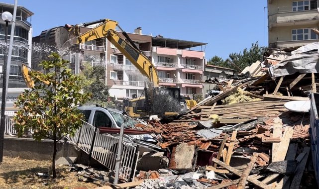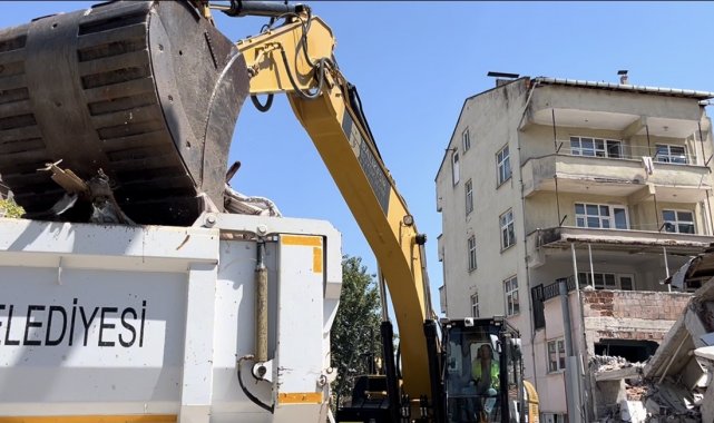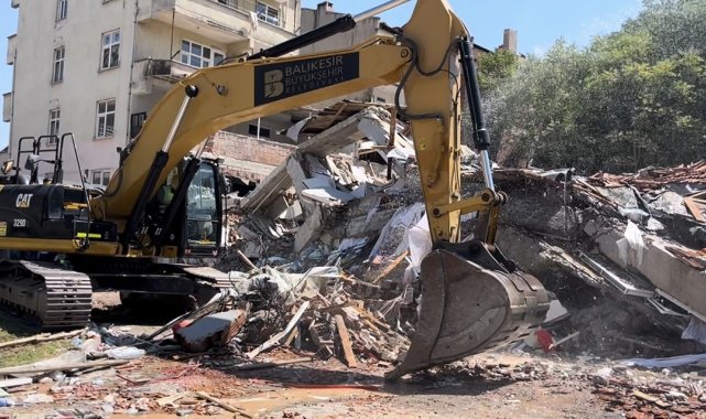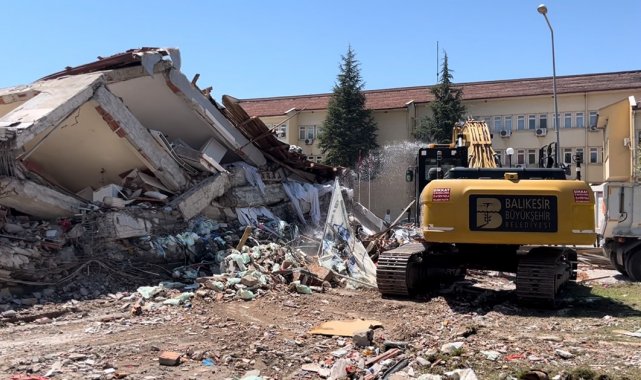 Balıkesir'de depremde yıkılan 3 katlı binanın enkaz kaldırma çalışmaları başladı