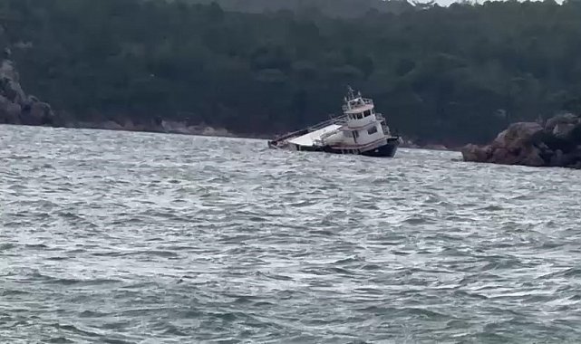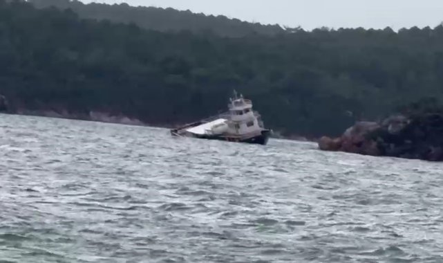 Balıkesir'de fırtına nedeniyle 25 metrelik feribot koya sürüklenerek karaya oturdu