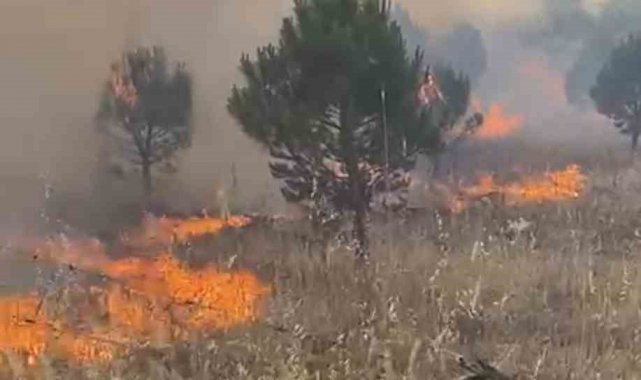 Rüzgarın artması ve alevlerin ormana yaklaşması sonrası Balıkesir'den havalanan helikopter de söndürme çalışmalarına katıldı.