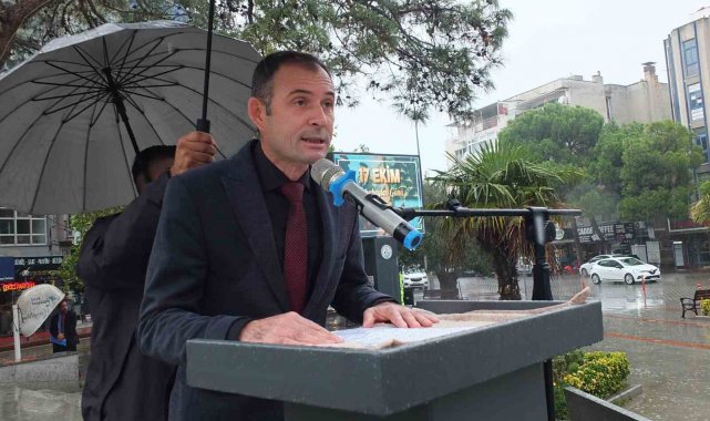Cumhuriyet Meydanındaki törende Muhtar Derneği Başkanı Hasan Dayı, Ören Mahalle muhtarı İlker Kurt ve Öğretmenler Mahallesi muhtarı Nesrin Yıldırım ile birlikte anıta çelenk koyarken, saygı duruşu yapıldı ve İstiklal Marşı okundu. Ören Mahalle muhtarı İlker Kurt günün anlam ve önemini anlatan konuşmayı da şemsiye altında okudu. Törene katılanlar, belediyenin gölgeliğinin ve şemsiyelerin altında yağmurdan korunmaya çalıştı. Katılımcılara teşekkür eden Ören Mahalle Muhtarı İlker Kurt, "Bu gün burada biz muhtarlar için büyük önem taşıyan çok özel bir günü kutlamak için bir araya geldik. 19 Ekim Muhtarlar Günü kutlu olsun. Hepinizi en içten duygularımla saygı ve sevgi ile selamlıyorum. Öncelikle, hafta sonu olmasına rağmen bu anlamlı günde bizleri yalnız bırakmayan siz değerli misafirlerimize ve vatandaşlarımıza gönülden teşekkür ediyorum. Bu gün biz muhtarlar için sadece bir kutlama günü değil, aynı zamanda bir hatırlama ve hatırlatma günüdür. Çünkü muhtarlık sadece bir görev değil bir gönül meselesidir. Muhtar halkın içinden çıkan devlet ile vatandaş arasında köprü kuran kişidir" dedi. Muhtar Günü kutlama törenine Belediye Başkanı Ali Kemal Deveciler ile başkan yardımcısı avukat Ayten Tuna, Jandarma komutanı yarbay Ünal Bayhan, İlçe Emniyet Müdürü Faik Karabaş, Kaymakamlık Yazı İşleri Müdürü Tuncay Kuru, siyasi parti ilçe başkanları, muhtarlar ve vatandaşlar katıldı.