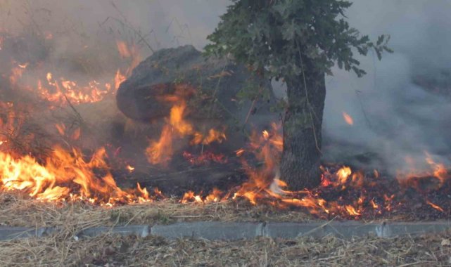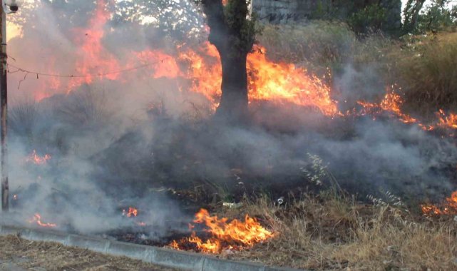 Balıkesir'de ot yangınını tüplerle söndürdüler