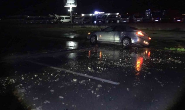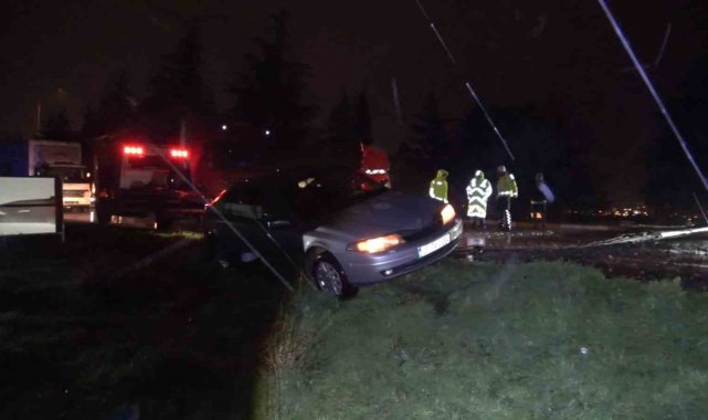 Olay, Balıkesir Çevreyolu'nda meydana geldi. Yoğun yağmurun kayganlaştırdığı yolda kimliği ve plakası tespit edilemeyen otomobil, şeride geçerek direğe çarptı. Devrilen direk, İzmir'den Bursa istikametine doğru seyir halinde olan 35 DA 3654 plakalı otomobil için büyük tehlike oluşturdu. Sürücü, yola düşen direğe çarpmamak için direksiyonu kırarak yoldan çıktı. Aynı istikametten gelen bir tır ise direğe çarpmamak için son anda durabildi.