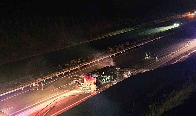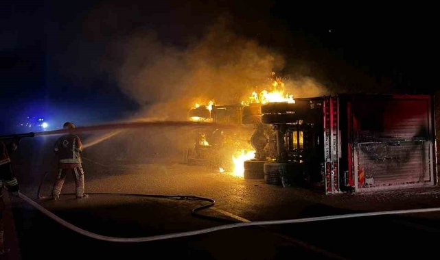 Kaza Balıkesir'in Savaştepe ilçesine bağlı Karacalar mevkisinde meydana geldi. Otoyolda seyir halinde bulunan 34 UC 5168 plakalı tır, öğrenilemeyen bir sebeple devrildi. Devrilen tırın yanmaya başlaması üzerine Savaştepe itfaiye ekipleri, 112 sağlık ve güvenlik ekipleri olay yerine sevk edildi. İtfaiye ekipleri yanan tırdan ormanlık alana sıçrayan yangını söndürmek için otoyolu bir süre trafiğe kapattılar. Ormanlık alana sıçrayan yangına itfaiye ekipleri tarafından büyümeden müdahale edildi. Yanan tırın otoyoldan kaldırılması sonrası yol seyrüsefere açıldı. Tır yangını ile soruşturmaya başlandığı bildirildi.