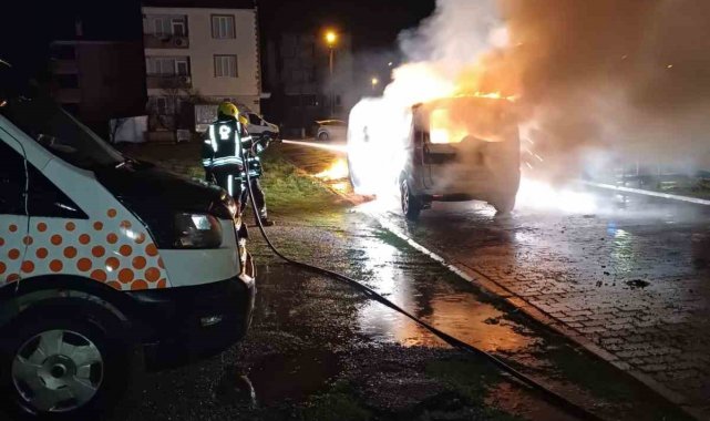Balıkesir'in Karesi ilçesinde sabaha karşı park halindeki hafif ticari araç yandı.