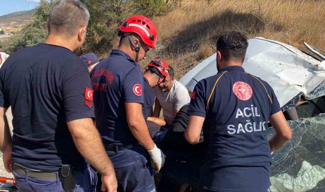 Balıkesir'de şarampole uçan araçta sıkışan 2 kişi yaralandı