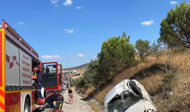Balıkesir'de Edremit kara yolu Çağdaşkent mevkiinde meydana gelen trafik kazasında direksiyon hakimiyetini kaybeden sürücünün aracı şarampole uçtu.