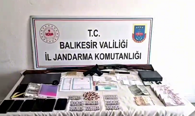 Operasyonda; 1 tabanca, 2 av tüfeği, 227 sentetik uyuşturucu hap, 64 senet, 5 çek, 2 tapu, 8 cep telefonu, 1 gizli kamera düzeneği, 8 dijital materyal, 6 ajanda ve hesap defteri, 101 tabanca fişeği ile suçtan elde edildiği değerlendirilen nakit para ele geçirildi.