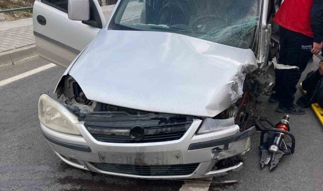 Balıkesir'in Karesi ilçesinde meydana gelen tek taraflı trafik kazasında hızla giriş bariyerlerine çarpan ticari araç kaza yaptı. Kaza yapan araçta bulunan sürücü itfaiye ekipleri tarafından kesici kullanılarak, yaralı olarak sağlık ekiplerine teslim edildi.