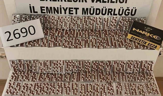 Edinilen bilgiye göre, Narkotik Suçlarla Mücadele Şube Müdürlüğü ekiplerince yürütülen çalışmalarda 2 bin 690 adet sentetik ecza hap ele geçirildi. Uyuşturucu veya uyarıcı madde imal ve ticareti suçlamasıyla 3 şüpheli hakkında işlem başlatıldı.