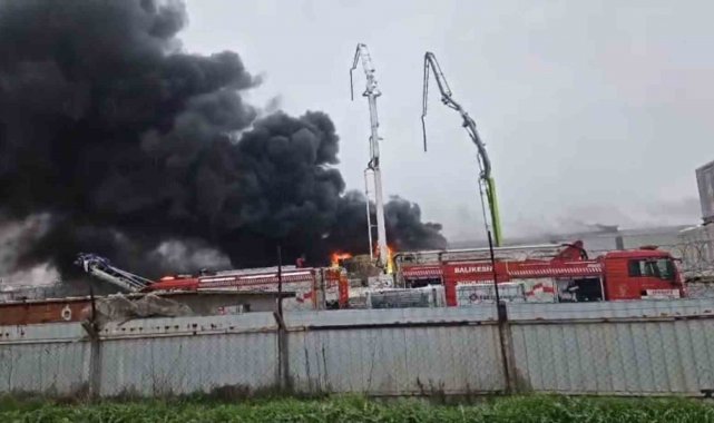 Balıkesir'de bir yapı marketin deposunda yangın çıktı. İtfaiye ekipleri yangına müdahale ediyor.