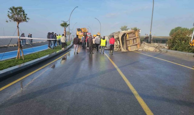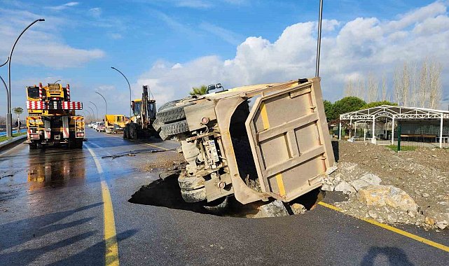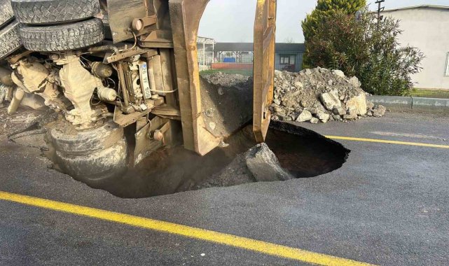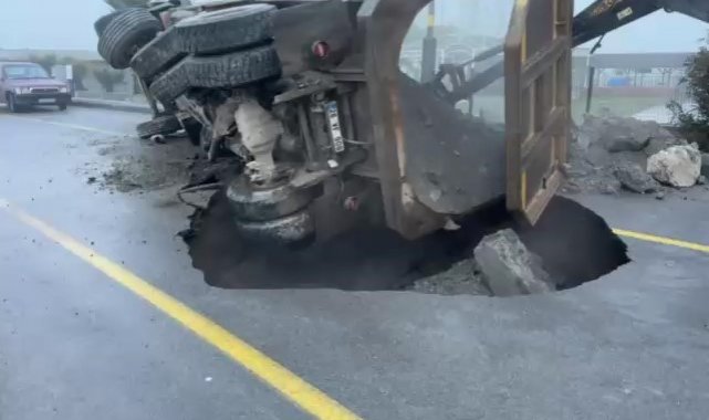 Edinilen bilgiye göre, Balıkesir'in Edremit ilçesi Ülkü Yolu üzerinde hareket eden 26 VF XXX plakalı hafriyat kamyonu, yolun çökmesi sonucu oluşan çukura düştü. Kaza sırasında araç yan yattı.