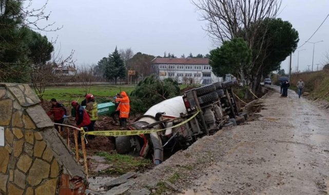 Balıkesir'de zemin çökünce beton mikseri devrildi: 1 ölü, 1 yaralı