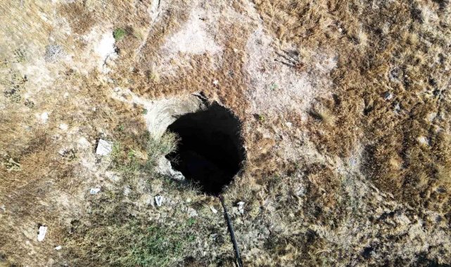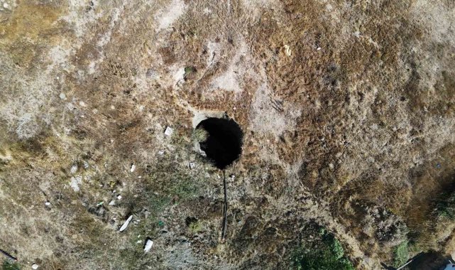 Balıkesir'deki 6.1'lik deprem sonrası Eskişehir'de oluşan obruk dron ile görüntülendi
