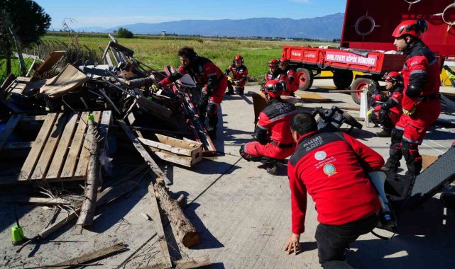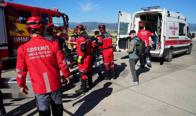 Balıkesir'deki 6.1'lik depremin ardından Koca Seyit Havalimanında ekipler kurtarma tatbikatı yaptı