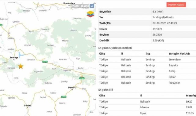 AFAD verilerine göre saat 22.48'de merkez üssü Balıkesir'in Sındırgı ilçesi olan 6.1 büyüklüğünde deprem meydana geldi. Deprem, Aydın'da da hissedildi. Sarsıntı sırasında ev ve iş yerlerinde bulunan vatandaşlar, paniğe kapılarak hızla açık alanlara çıktı. Bazı vatandaşlar uzun süre sokaklarda beklerken, apartman girişlerinde toplananlar ise artçı sarsıntılara karşı tedirginlik yaşadı.