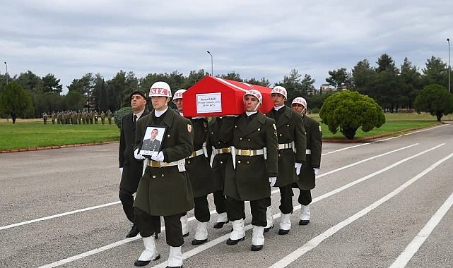 Balıkesir'in Edremit ilçesinde silahlı saldırıda hayatını kaybeden Uzman Çavuş Kemal Ekri'nin cenazesi, düzenlenen askeri törenin ardından memleketi Ankara'ya gönderildi.