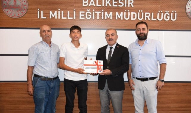 Ödül alan öğrenciler, onlara rehberlik eden öğretmenler ve okul idarecileri Balıkesir İl Milli Eğitim Müdürlüğünde İl Milli Eğitim Müdürü Murat Demir tarafından ağırlandı. İl Müdürü, öğrencilerin başarılarından duyduğu memnuniyeti ifade ederek, sıfır atığın ve geri dönüşümün önemine dikkat çekti; eğitimde gösterilen çaba ve emeğin her zaman destekleneceğini vurguladı.