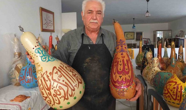 Balıkesir'in Burhaniye ilçesinde yaşayan memur emeklisi Mahmut Ertan, hat yazıları ile süslediği kabakları Craft İstanbul 6.Uluslararası El Sanatları ve Tasarım Fuarı'nda sergileyecek.