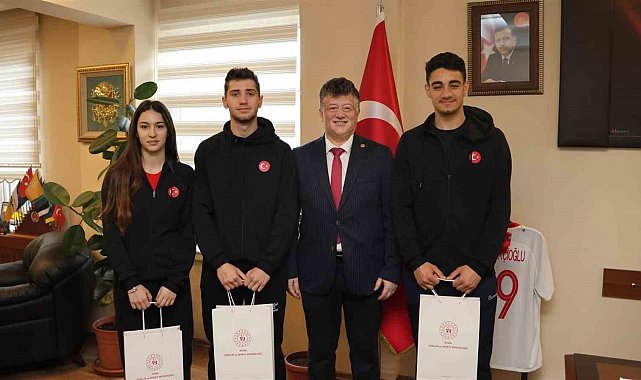 Şampiyonadan dönen başarılı sporcular, Aydın Gençlik ve Spor İl Müdürünü makamında ziyaret ederek elde ettikleri başarıyı paylaştı.