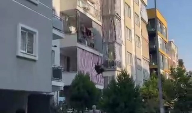 Genç kadının apartmanın 3. katından kendini boşluğa bıraktığı anlar kameraya yansıdı. Genç kadının beton zemine çakıldığını görenler sinir krizi geçirirken, ağır yaralı olarak hastaneye kaldırılan kadının tedavi altına alındığı öğrenildi.